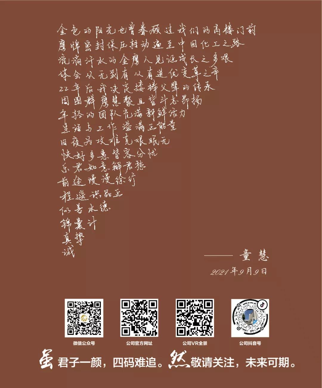 沖鋒的號(hào)角再次吹響,我們又一次出發(fā)向前。未來,我們要立足長(zhǎng)遠(yuǎn),把握當(dāng)前,堅(jiān)定信心,我們將以“有幸金鷹、無悔金鷹”的情懷,以“功成必定有我”的使命擔(dān)當(dāng),只爭(zhēng)朝夕,不負(fù)韶華,共同續(xù)寫金鷹下一個(gè)二十年的理想與榮光!
